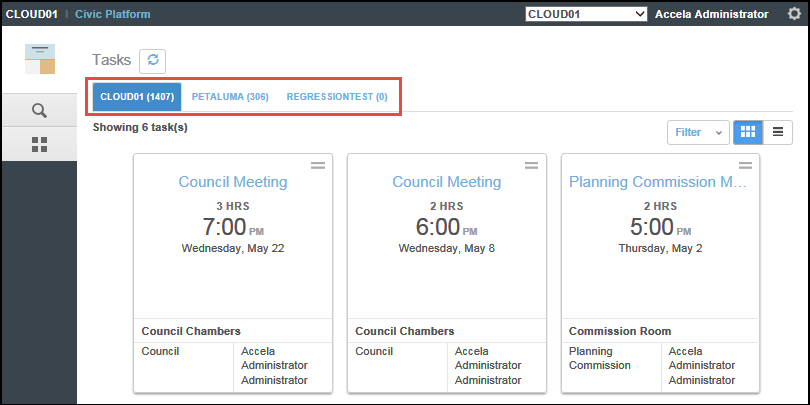 The task dashboard supports multi-agency environments, enabling super agency users to view tasks that originate from the various child agencies they work with, all in one place on the Civic Platform dashboard.